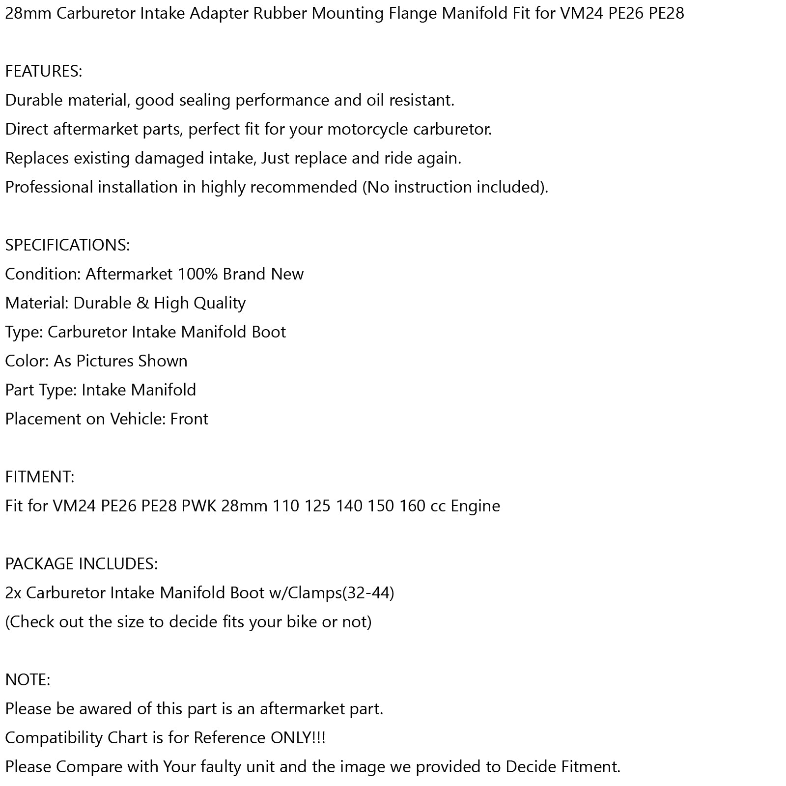 28mm Carburetor Intake Adapter Rubber Mounting Flange Manifold Fit for VM24 PE26 PE28