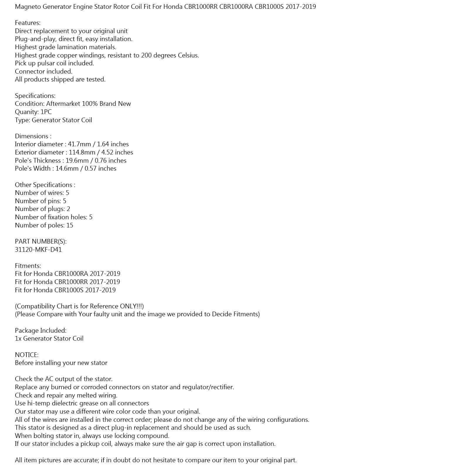 Alternator Stator Generator Fit for Honda CBR 1000 RR RA SP 2017 2018 2019 via fedex
