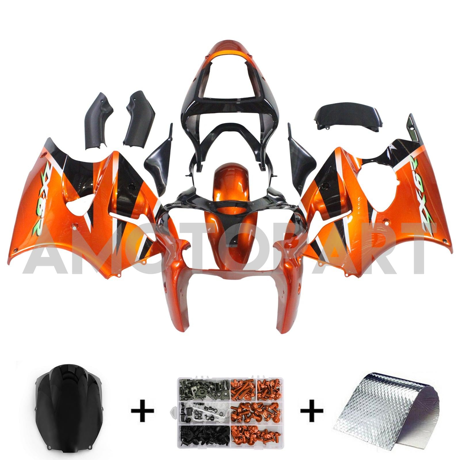 Amotopart Kawasaki 2000-2002 Zx6R 636/ZZR600 2005-2008 Fairing Orange Black Kit