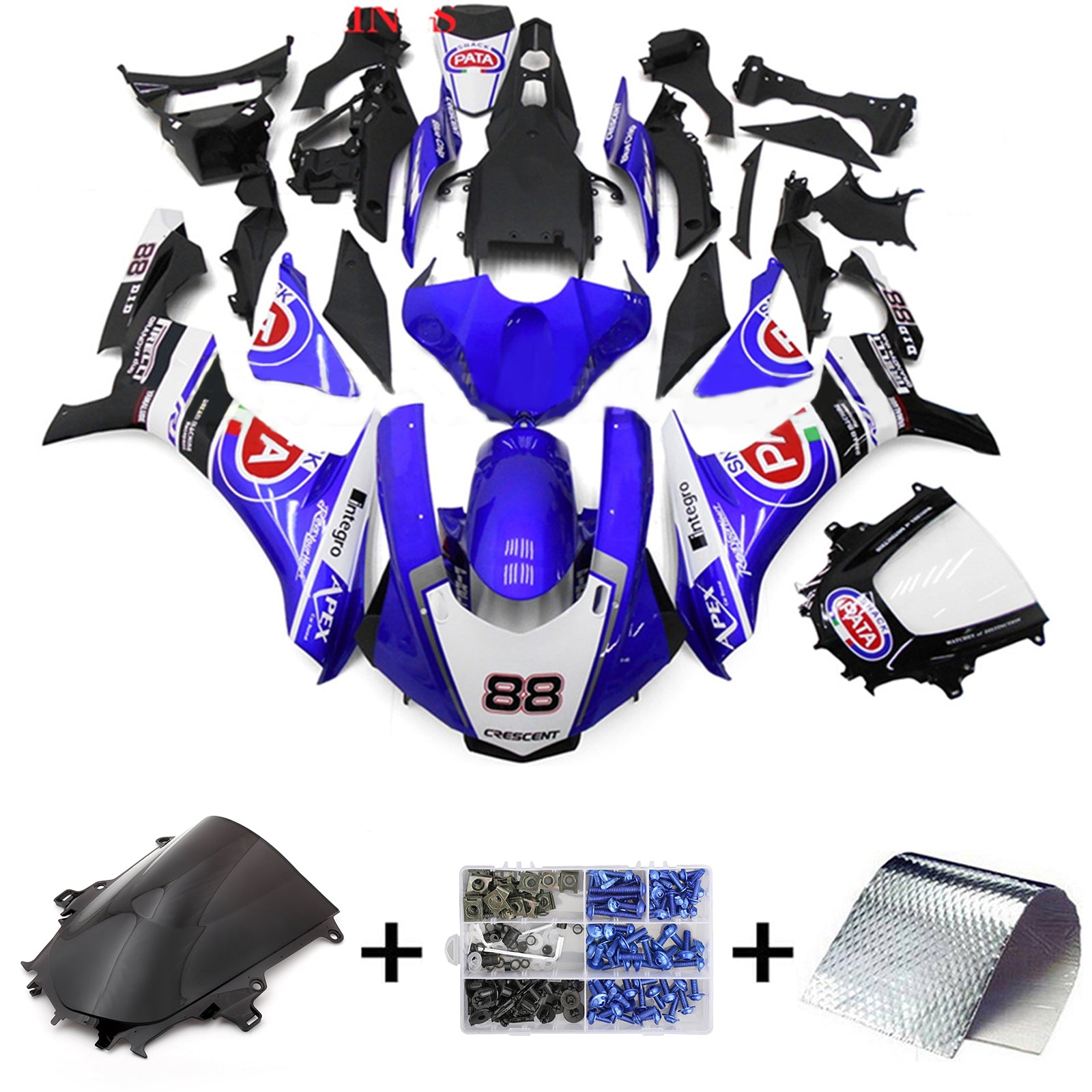 Amotopart Yamaha YZF 1000 R1 2015-2019 Blue&White with Logo Fairing Kit