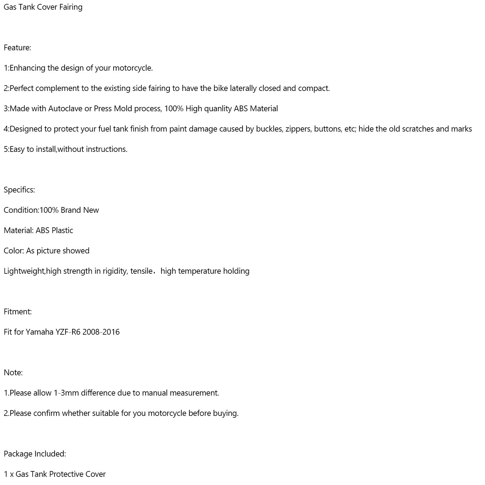 4:Designed to protect your fuel tank finish from paint damage caused by buckles, zippers, buttons, etc; hide the old scratches and marks