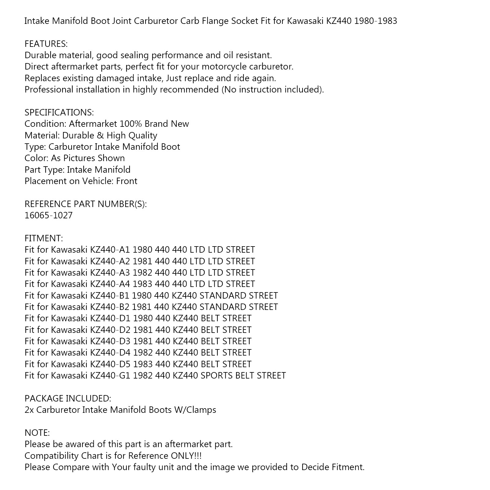 1980-1983 Kawasaki Kz440 / 440 Ltd New Carburetor Holders 16065-1027